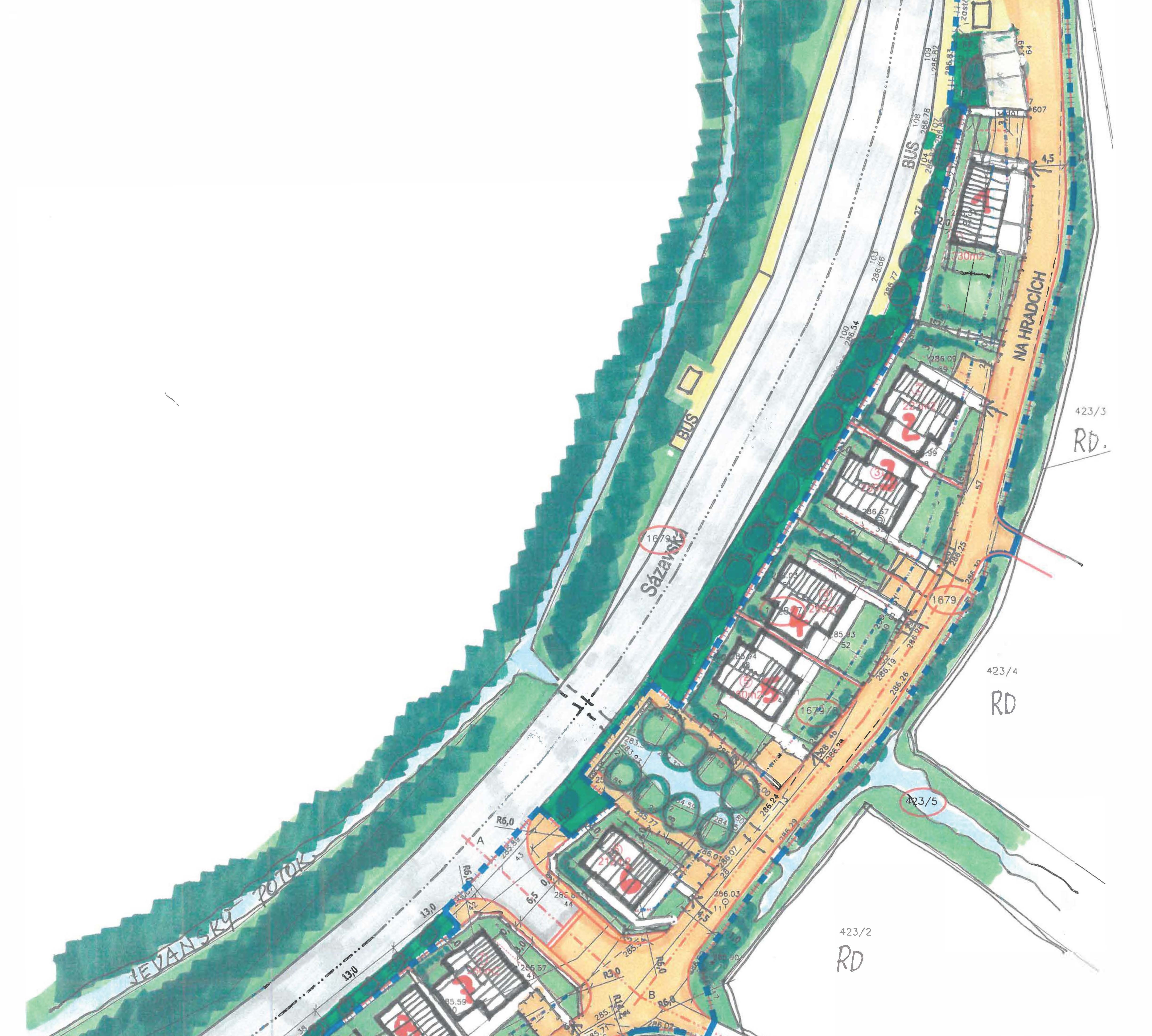 Construction of a complex of 9 family houses in Stříbrná Skalice.